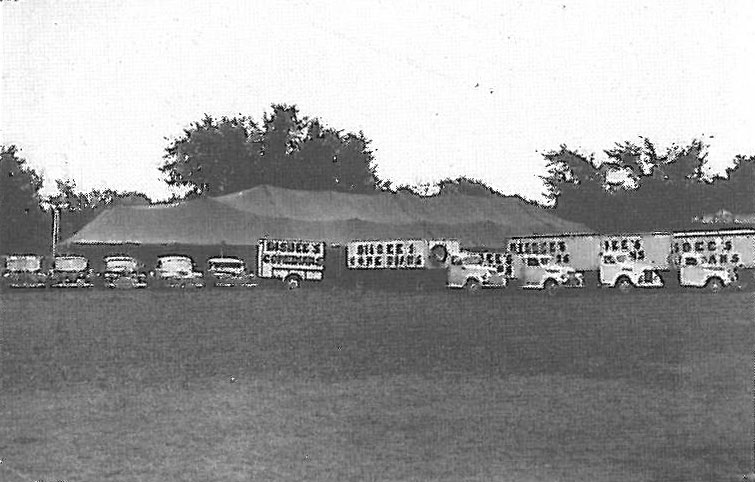 In 1927, shortly after his marriage to Mary, he struck out on his own, entering the tent show field with his Bisbee's Comedians, offering old-time dramas and magic nightly, with a complete change of bill each night during the week. After a few lean years, fortune turned a kindly eye his way. Bisbee's Comedians were a well respected company. It was always a welcomed sight when the six big trucks, proudly lettered with the show's name, followed by cars and trailers, rolled into town to set up the large canvas tent that would seat 1,000.