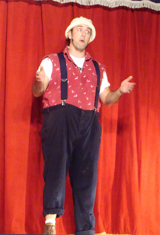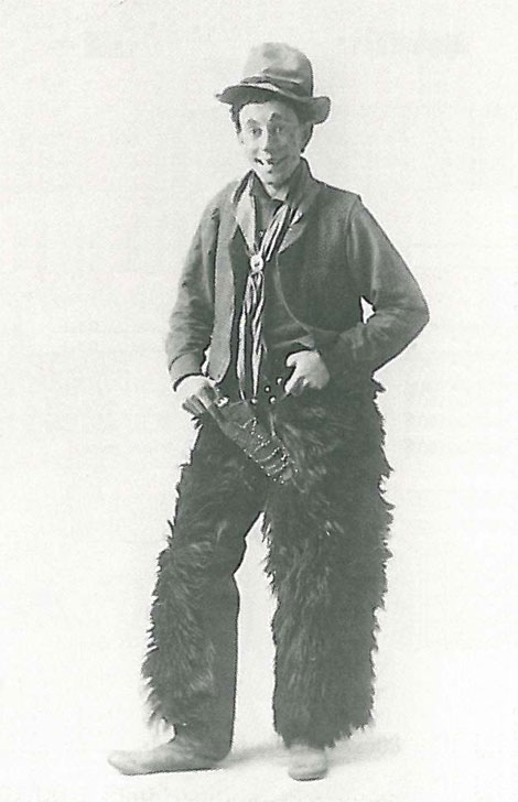 The country bumpkin was instantly recognizable, however, in any area of the country, due to his red hair, freckles, blacked-out front tooth, ragged clothing and homespun humor. Hitching up his britches, he would employ slapstick, winks, facial contortions and theatrical gymnastics to the delight of the audience.